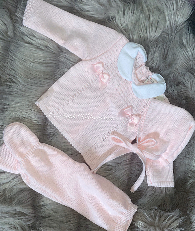 Bargain pink 3 piece luxe knit set with bonnet newborn-3 months