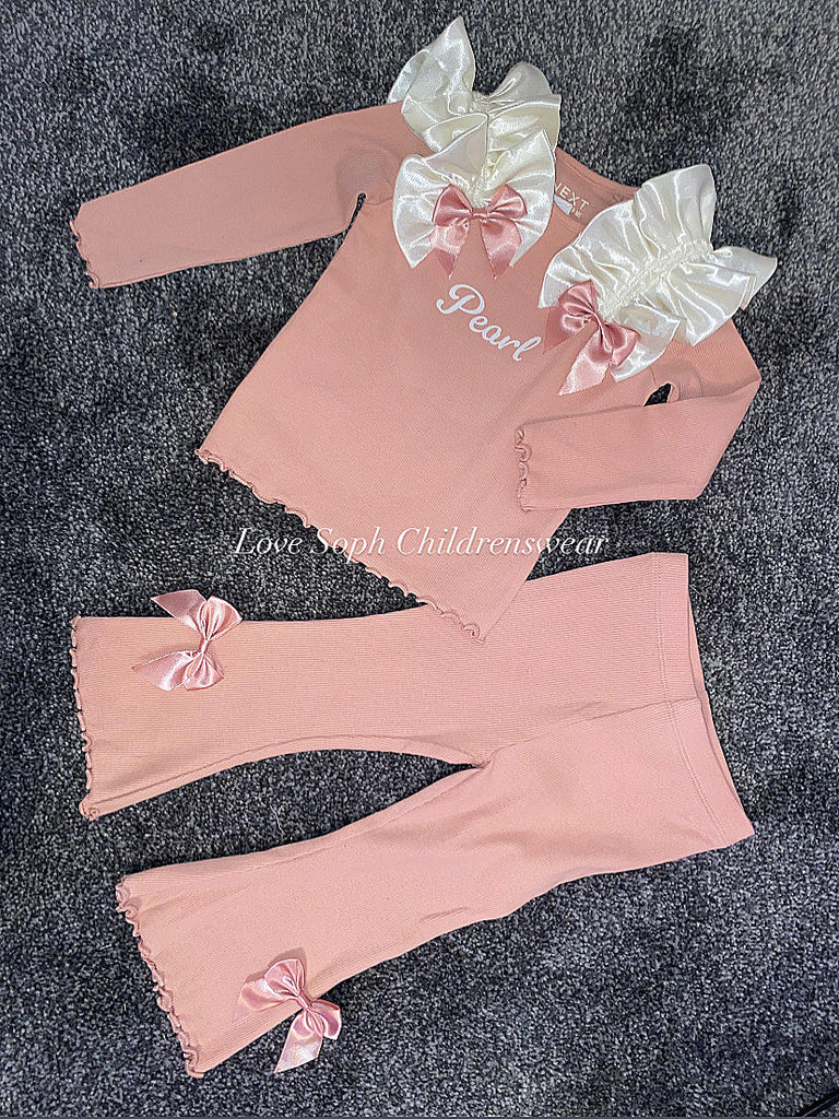 Personalised handmade frilly lounge set dusky pink flares or leggings